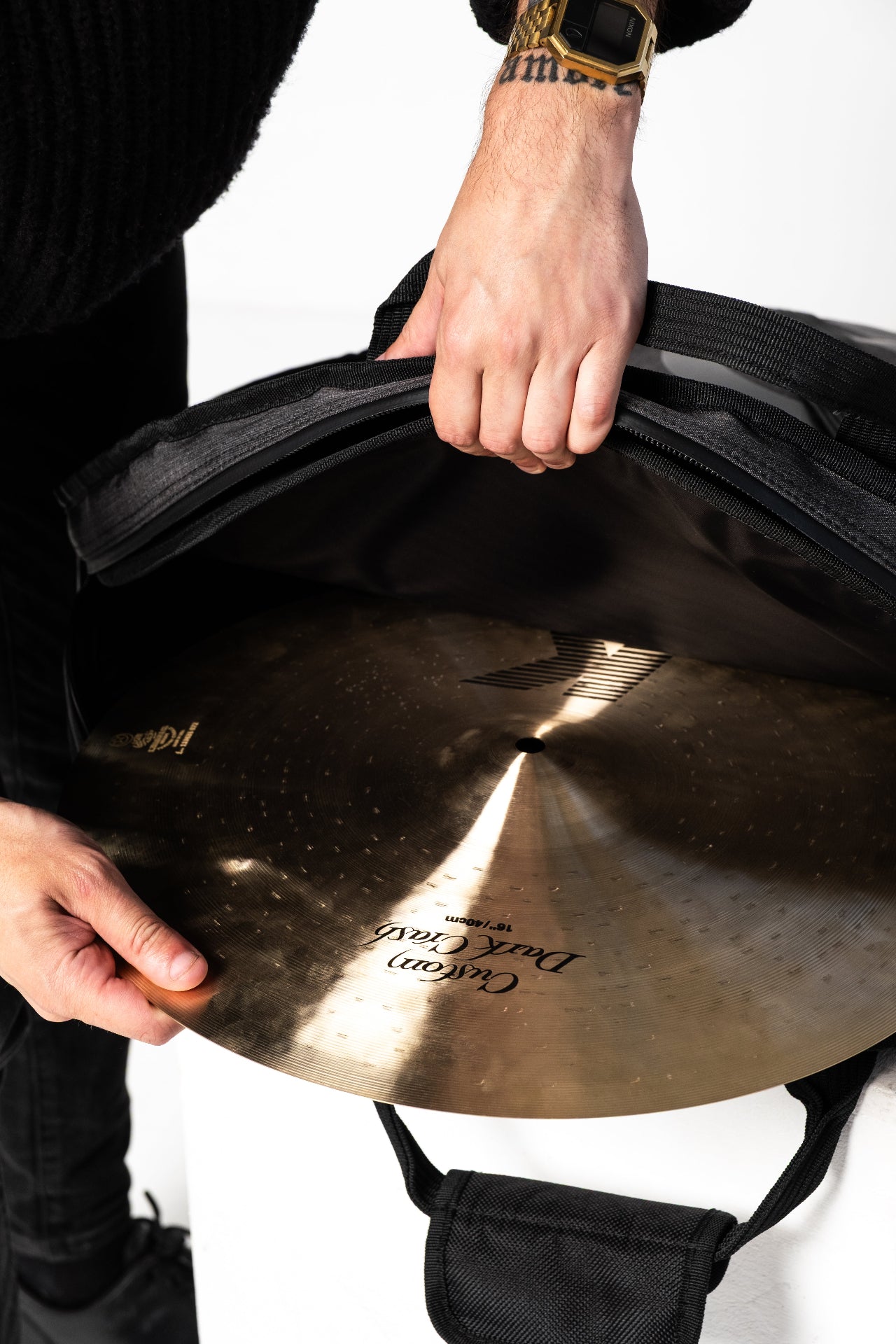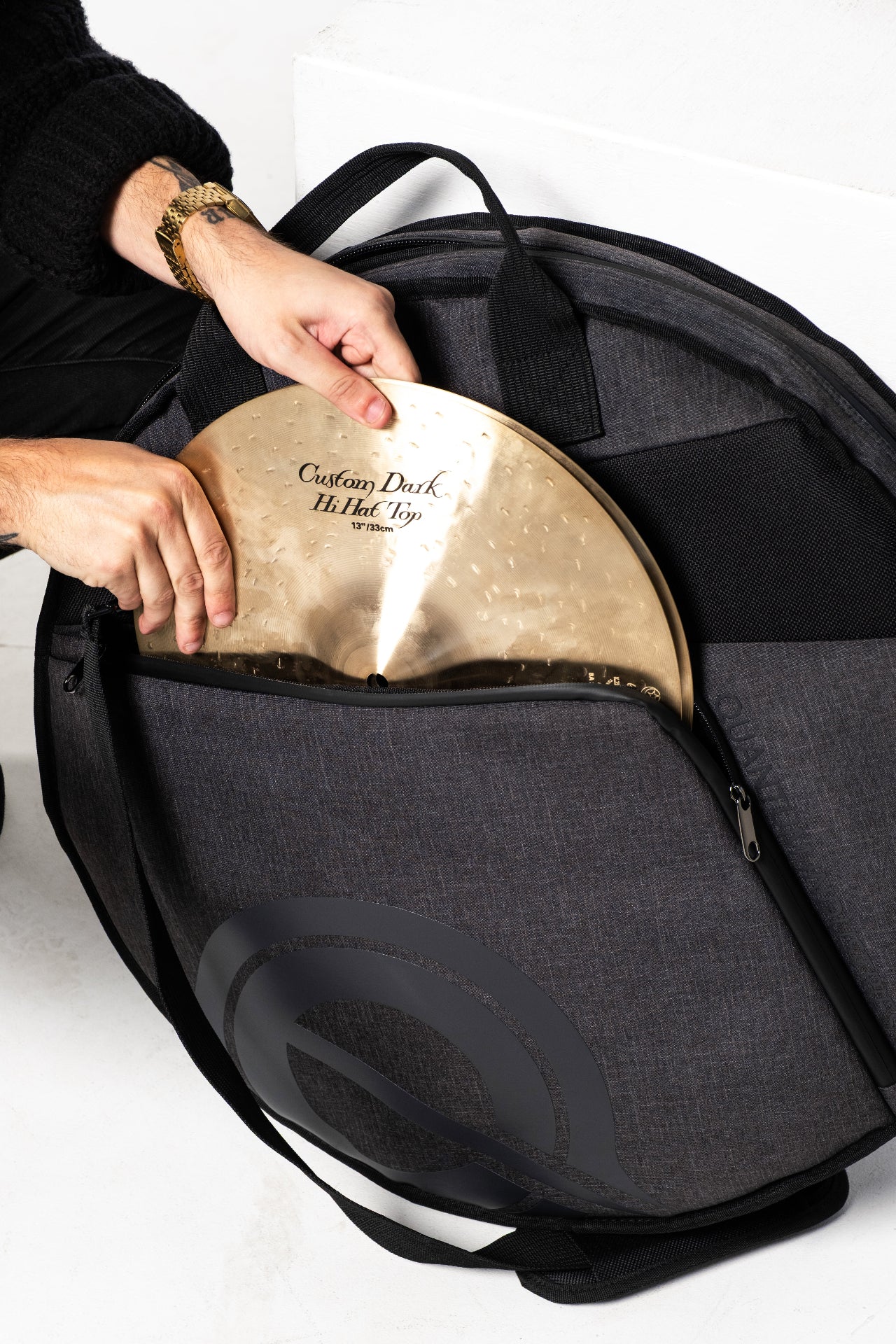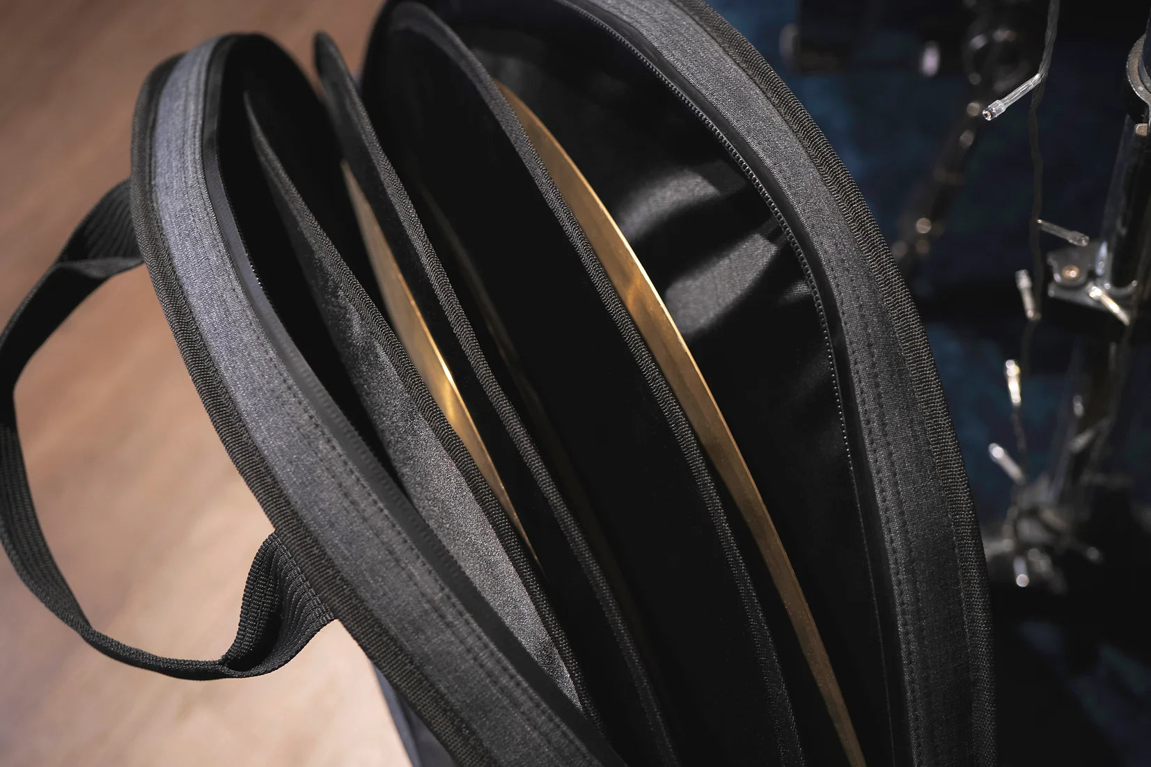 • Tres divisores acolchados con suficiente espacio en el bolsillo principal para la mayoría de los platillos estándar de los bateristas, por ejemplo: 1 Ride, 2 Crashes, 1 China y un par de charles.