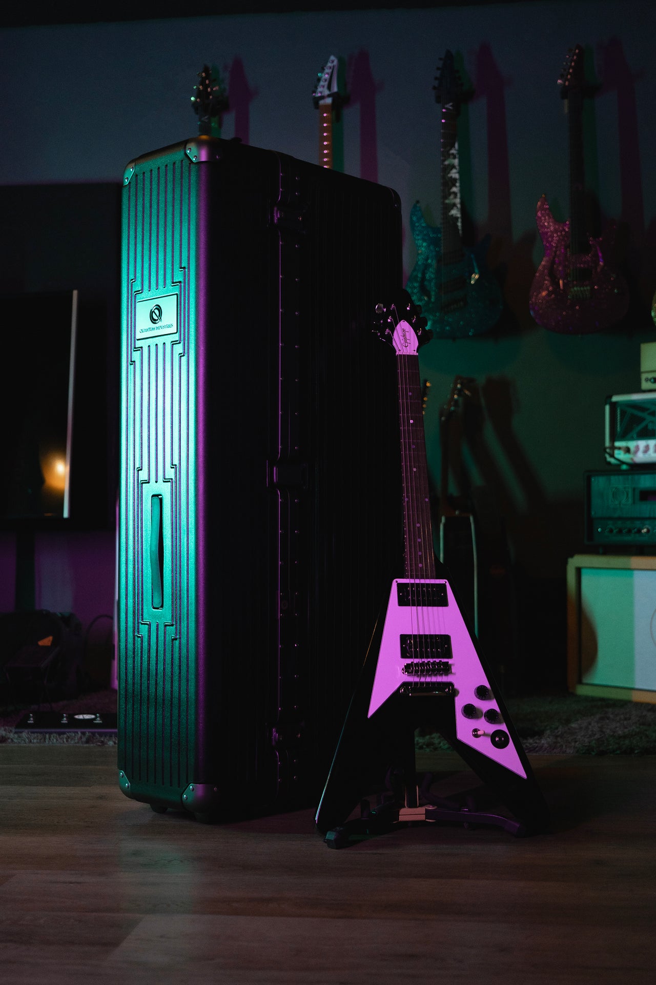 46cmの広幅の奥行きがギブソンフライングV、エクスプローラー、 ES355などの変形ギターに対応しています。