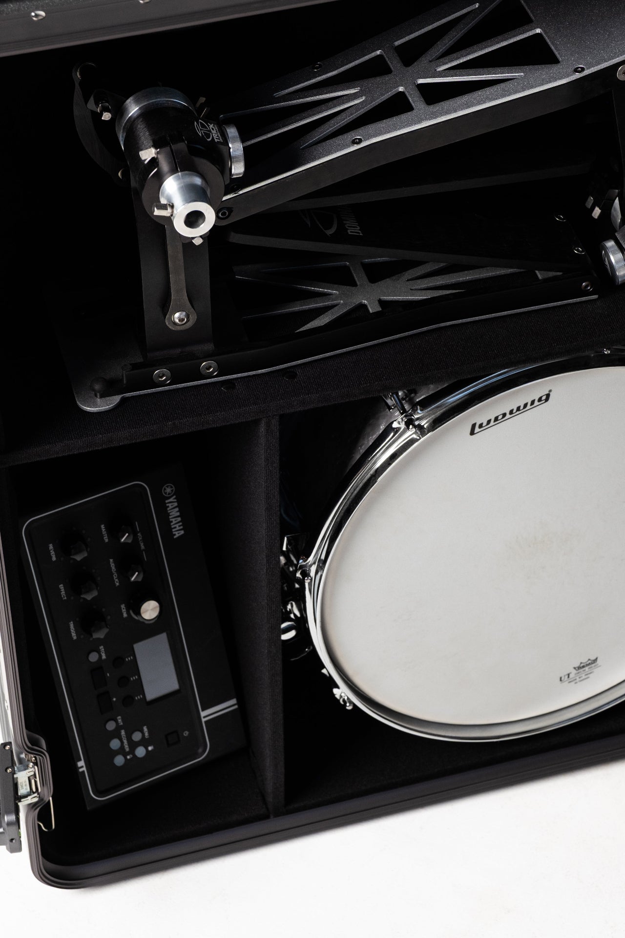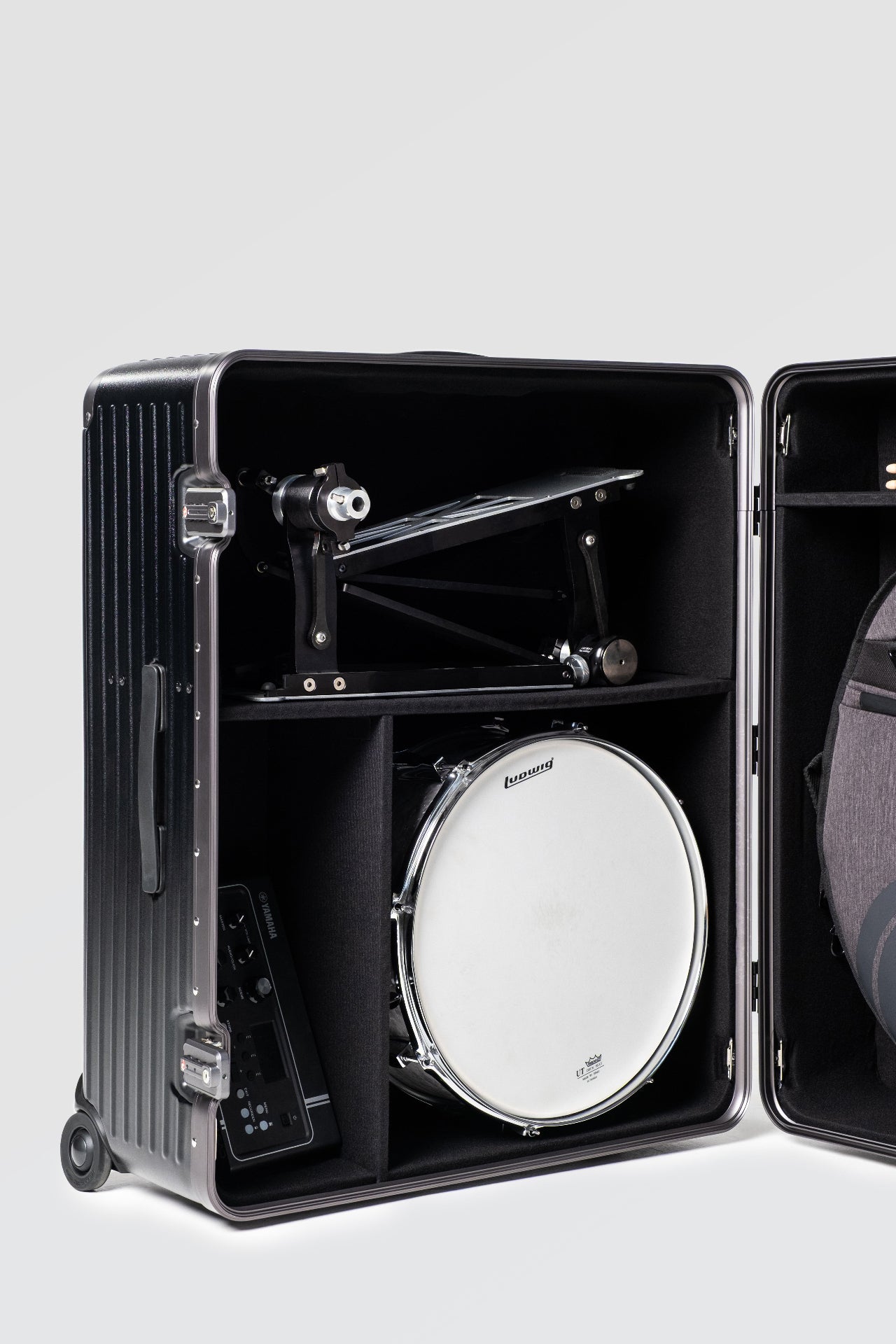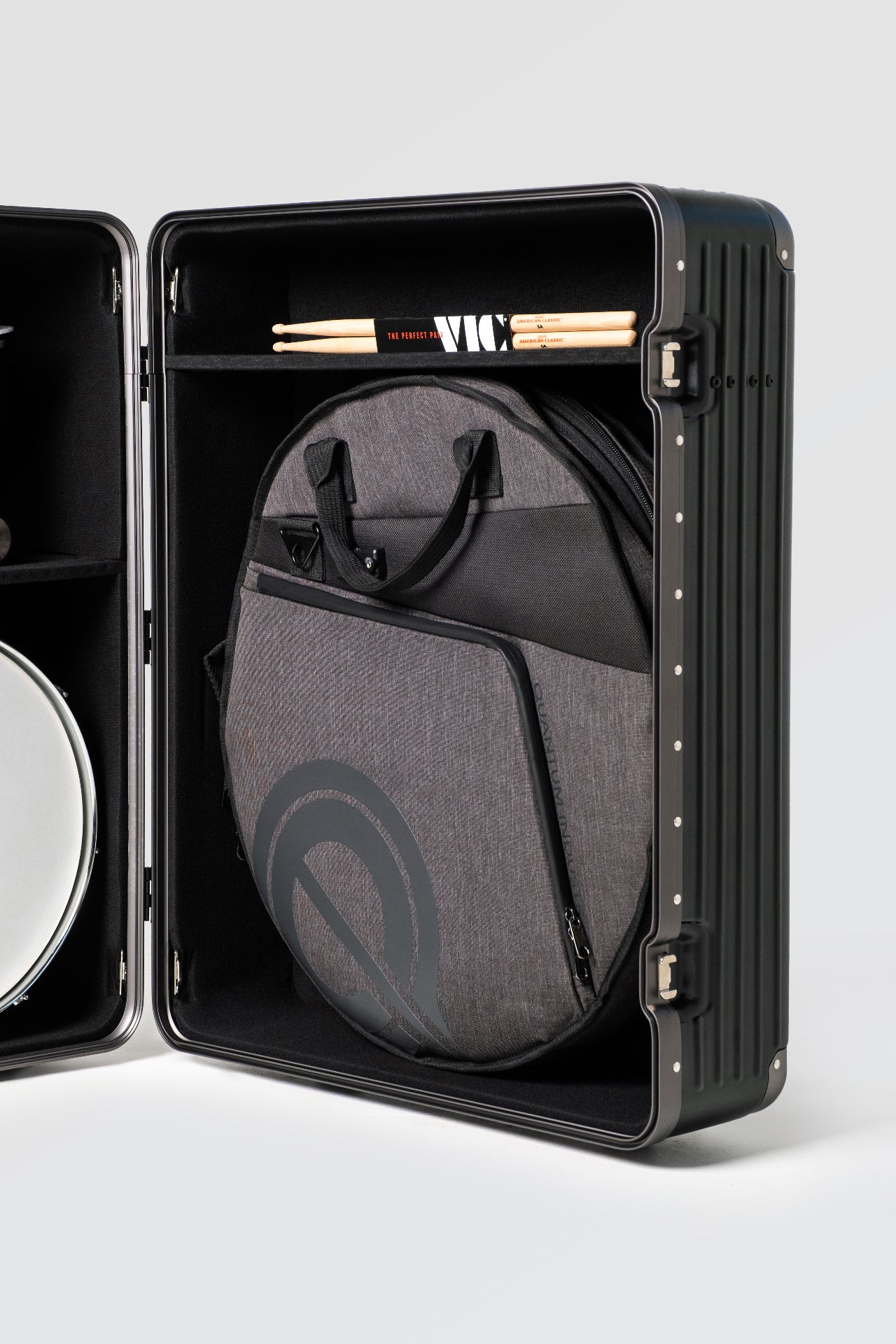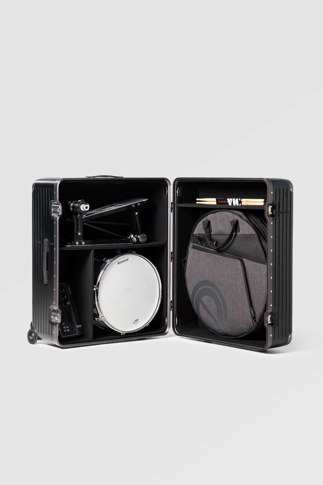 We made sure DRM would fit 22" cymbals with our C40K Cymbal bag being the perfect companion for the case. Also all pedal options and the vast majority of common snares on the market will also fit for extra versatility.