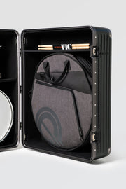Gone are the days of carrying 5 separate bags and cases for your drum equipment! This road case is perfect for the trailer, tour bus, or van for holding your favorite Snare, Kick Pedal, Cymbals, and more.