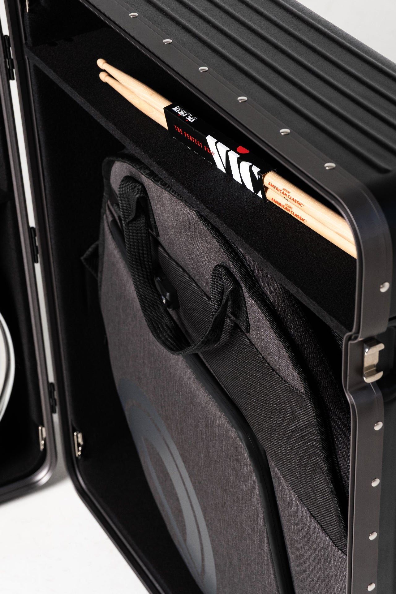 DRM also has two extra compartments big enough for most other accessories drummers travel with too.