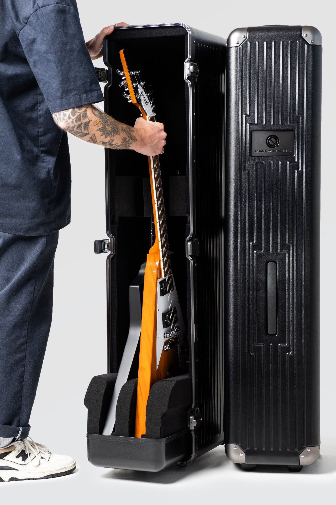 VXP is our new touring case for Professional Guitarists with extreme/offset sized guitars such as Flying V, Explorer, RD, & ES-355