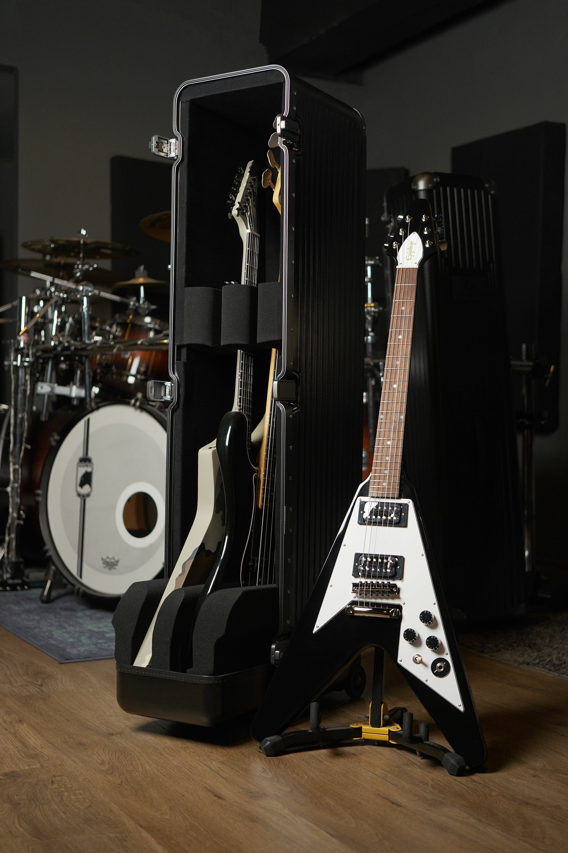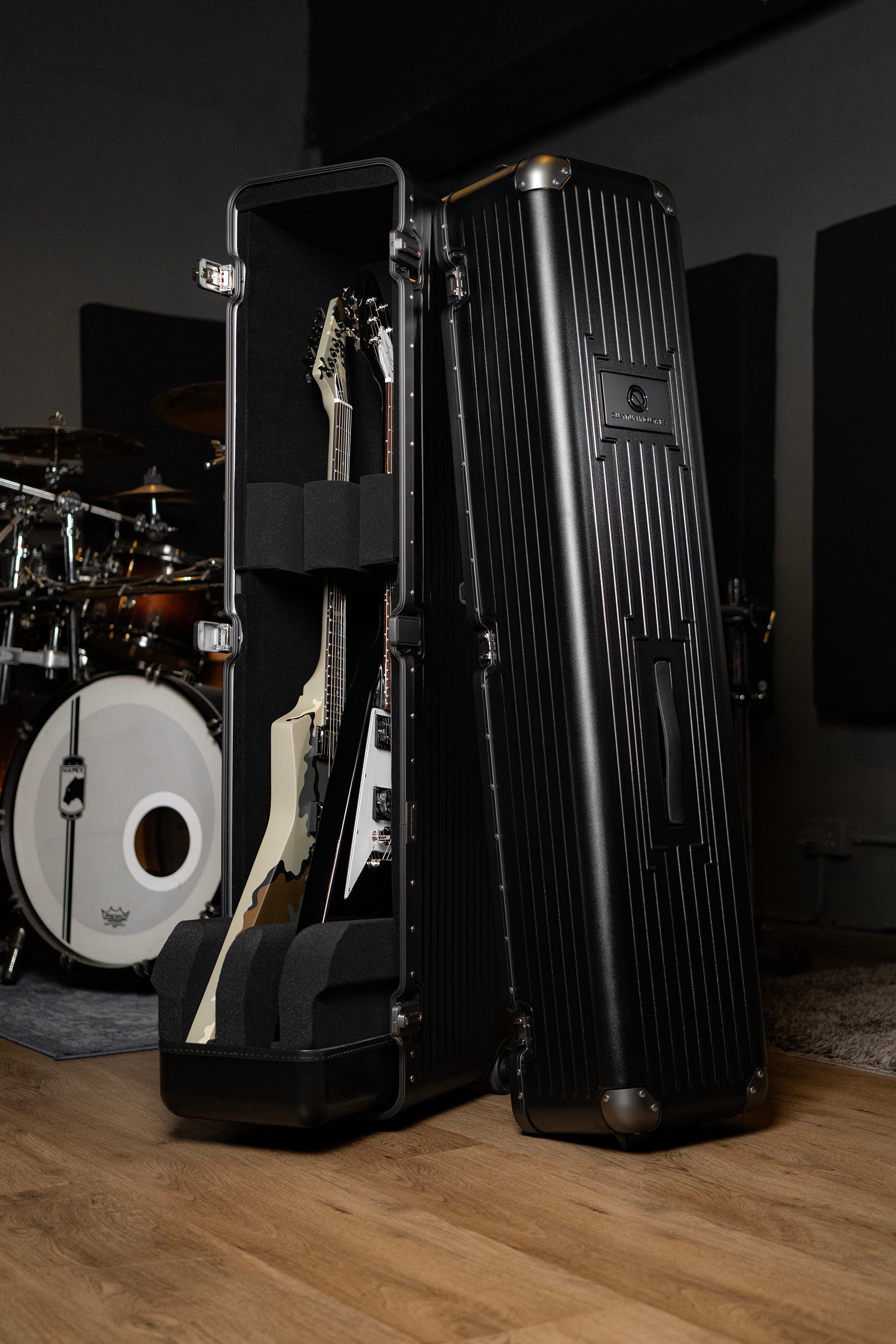 • Foam inserts for variable length bass and guitar necks for easy mixing and matching of guitars